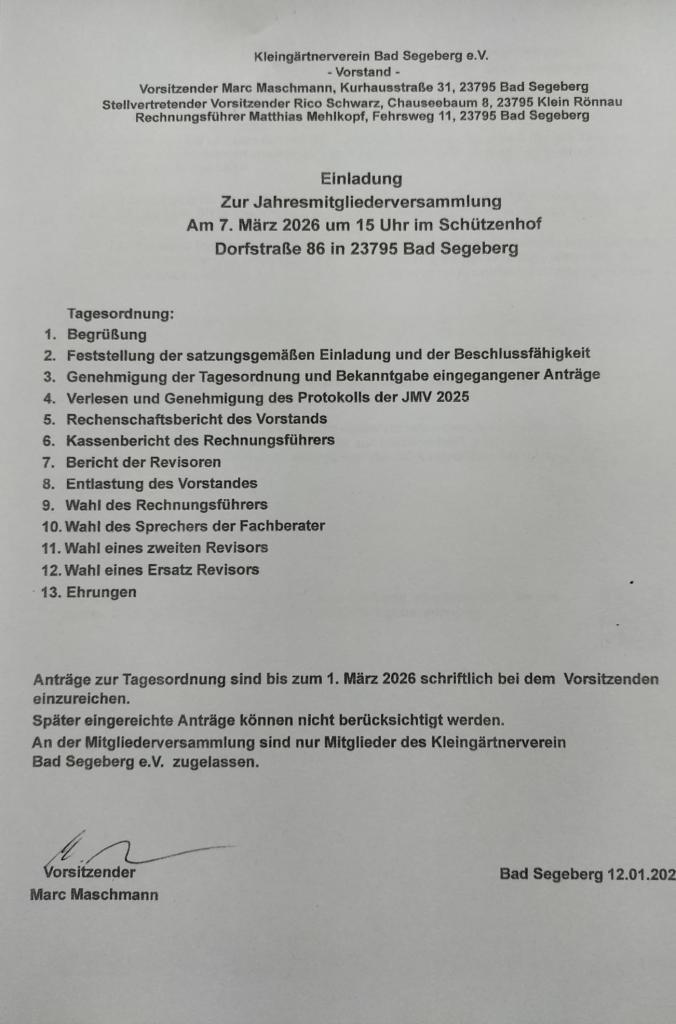 Jahresmitgliederversammlung: